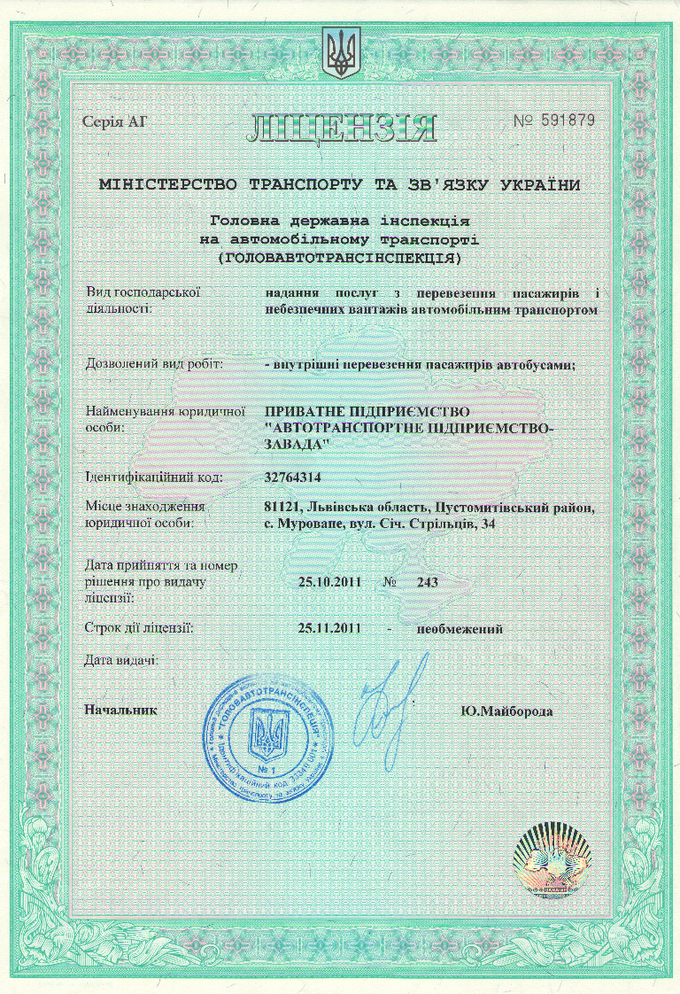 Ліцензія - АТП-Завада